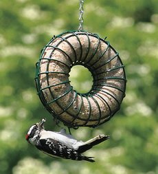 Round Wreath Suet, Round Wreath Suet Cage Bird Feeder With Suet. Get a round suet! Our Round Wreath Suet Cage Bird Feeder With Suet has a large capacity for less frequent filling. Even better, the round shape helps give you a better view of the birds. Plastic covered metal mesh wreath is hinged for easy refilling and hangs from the included chain. Your feathered friends will love the special holiday recipe in our 18 oz. cranberry cakes. Two cakes included. Single suet cake refills sold separately. Round suet feede