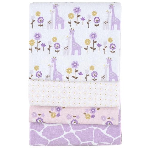 Carter's C419RCV, Keep your baby nice and warm and cozy with Carter's Receiving Blankets. The blankets are made of 100% cotton flannel for plush comfort and a cozy feel. This package includes 4 different designs that coordinate well together. The first blanket is set in a purple safari theme with giraffes grazing among colorful flowers, the next blanket features uniform pin dots, then a pink blanket with sprays of colorful flowers and the last blanket offers a bold purple giraffe fabric background. Each blanket measures 30" x 40" so you can easily wrap up your tot whether you're taking baby on a play-date or just settling your little one down for a nap. The fabrics are machine washable and dryable for easy cleaning and care.